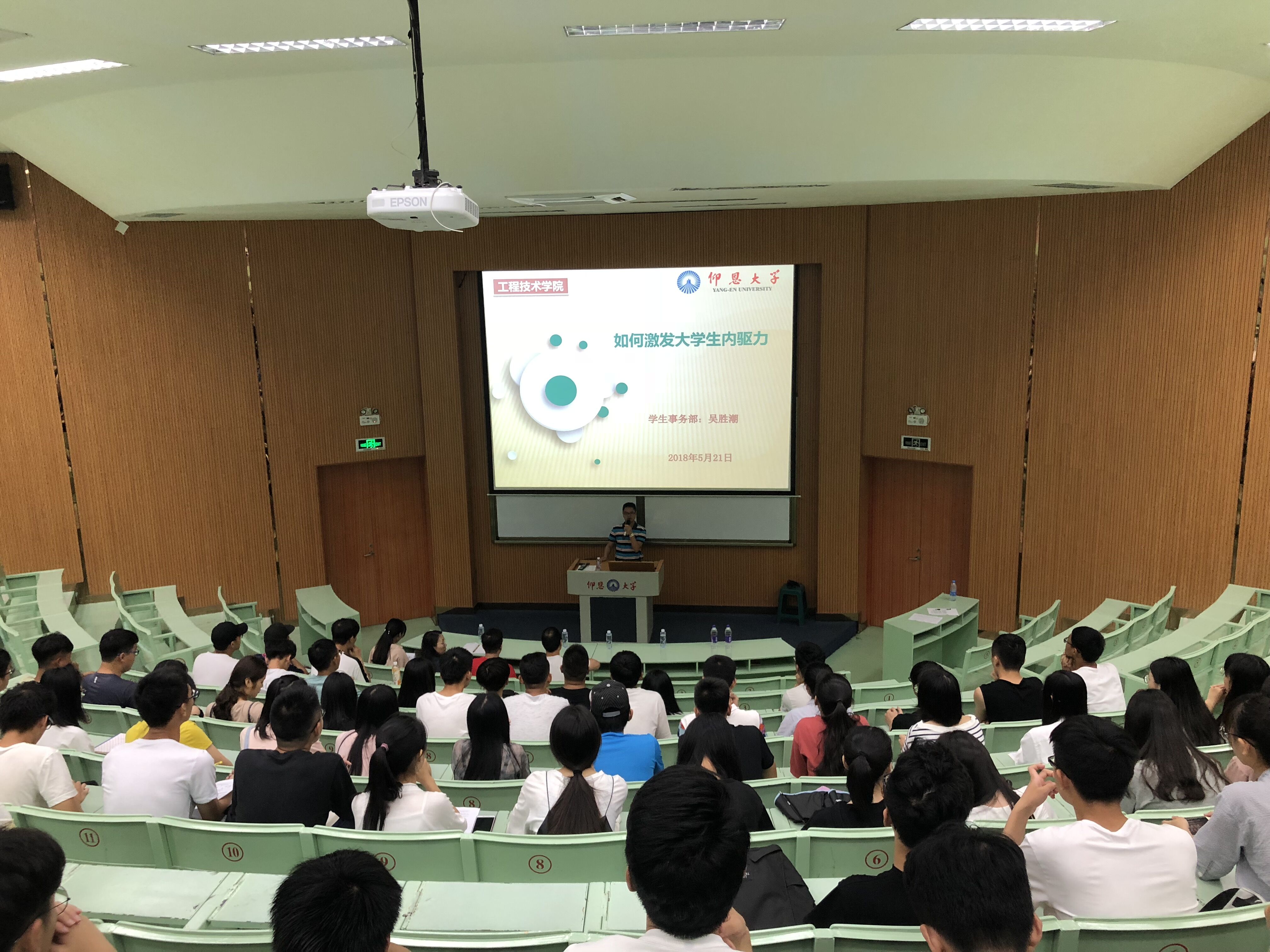 吴胜潮主任以如何激发自身内驱力为主题展开讲座,对beat365近阶段的学风改善给与了肯定,学风的改善离不开教师以及学院学生骨干的付出。以个别案例指出了当代大学生期望值不高,目标不明确,沉迷于游戏等一些现状。以罗格斯大学,麻省理工学院等美国高校例子进行对比,结合自己的经历与学生分享学生时代的学习生活。并对学生干部们提出几点建议首先要有居安思危的忧患意识,做好职业生涯规划,提高自身内驱力,才能时刻准备应对变化。其次学生干部应树立正确的自身价值观,严格要求自己,认真履行职责,发挥带头作用,注重自身修养提高工作效率,传帮带动下一届的学生。最后用“常怀感恩之心,心有敬畏二字,” 表达了对大家的期望,期待着各部门在学生工作方面取得长足进步。
