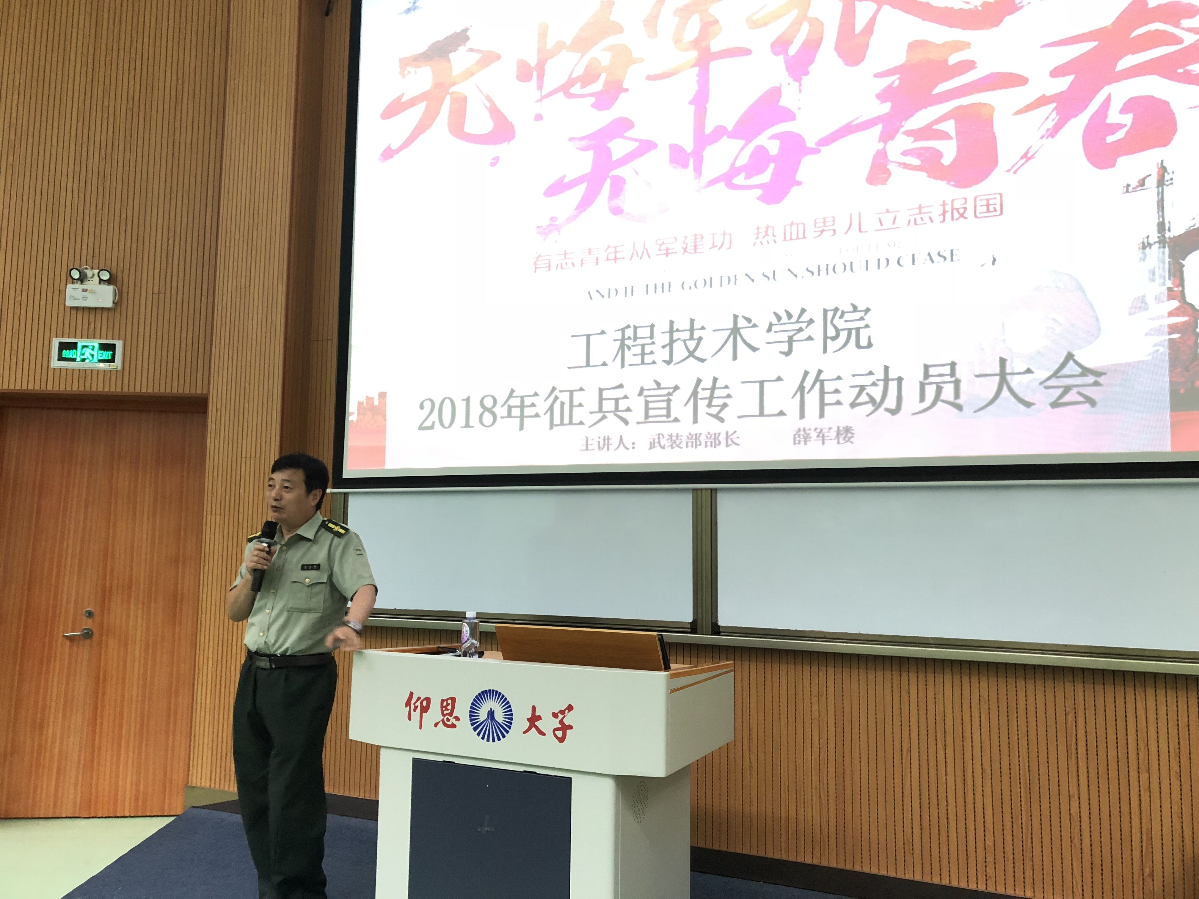 5月21日,beat365在线唯一官网登录在旧区和昌乐之讲堂举办大学生征兵入伍政策宣传教育主题活动。本次讲座邀请校武装部部长薛军楼主讲,学院党总支书记兼副院长曾凤生,总支副书记吕思仁,全体辅导员,学院各年级学生干部,党员,以及团委学生会骨干参加本次讲座。
