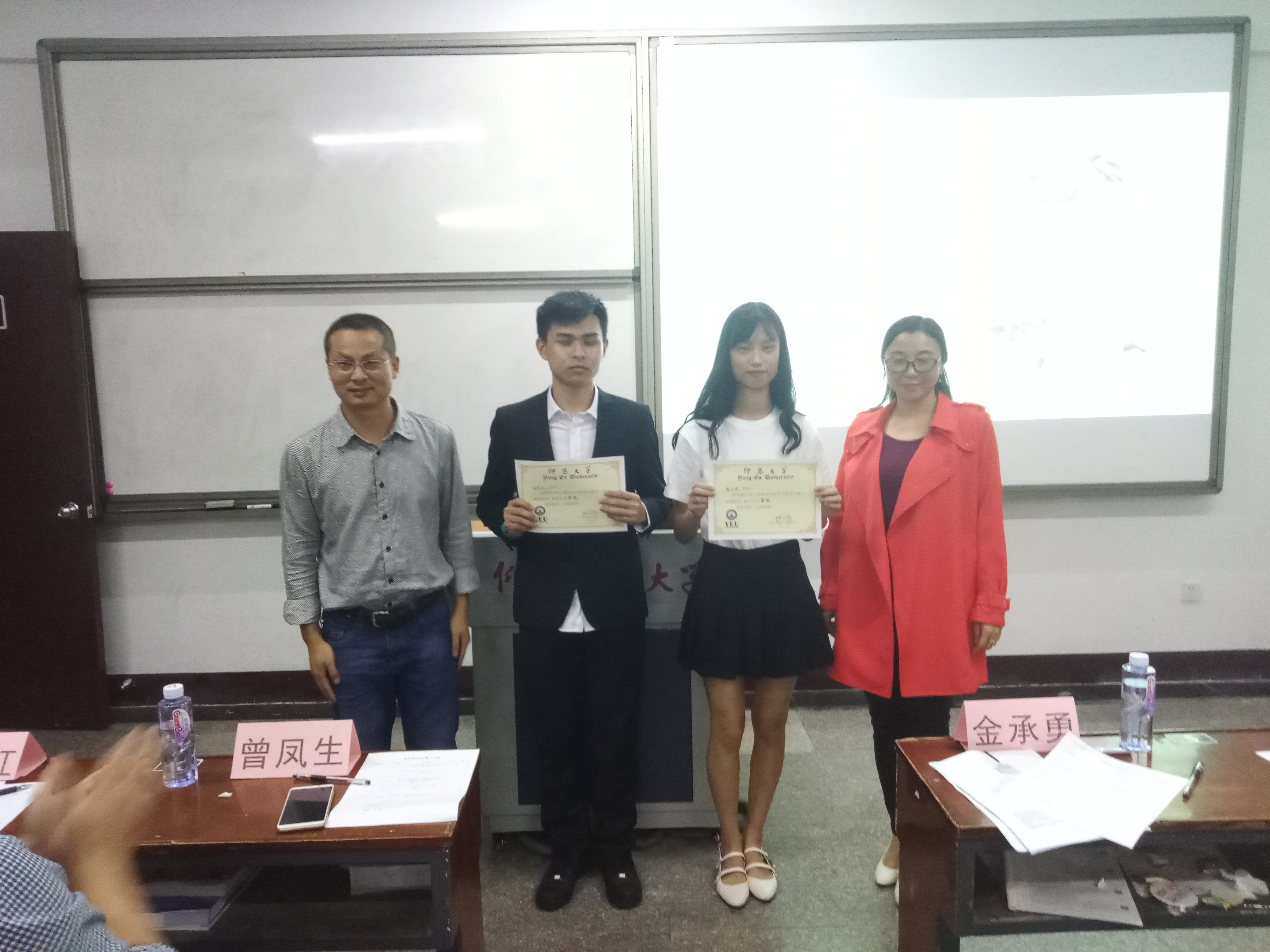 由院学生会举办的秋季英语演讲比赛于10月15日晚上7点在共和219拉开帷幕。此次的比赛邀请到的嘉宾有:beat365在线唯一官网登录党总支书记兼副院长曾凤生老师、学院常务副院长金承勇老师、学院教学副院长李影老师、外国语学院黄安然老师、外国语学院张思思老师、beat365在线唯一官网登录学生会指导老师陈晓红老师以及两名外语协会的同学。
