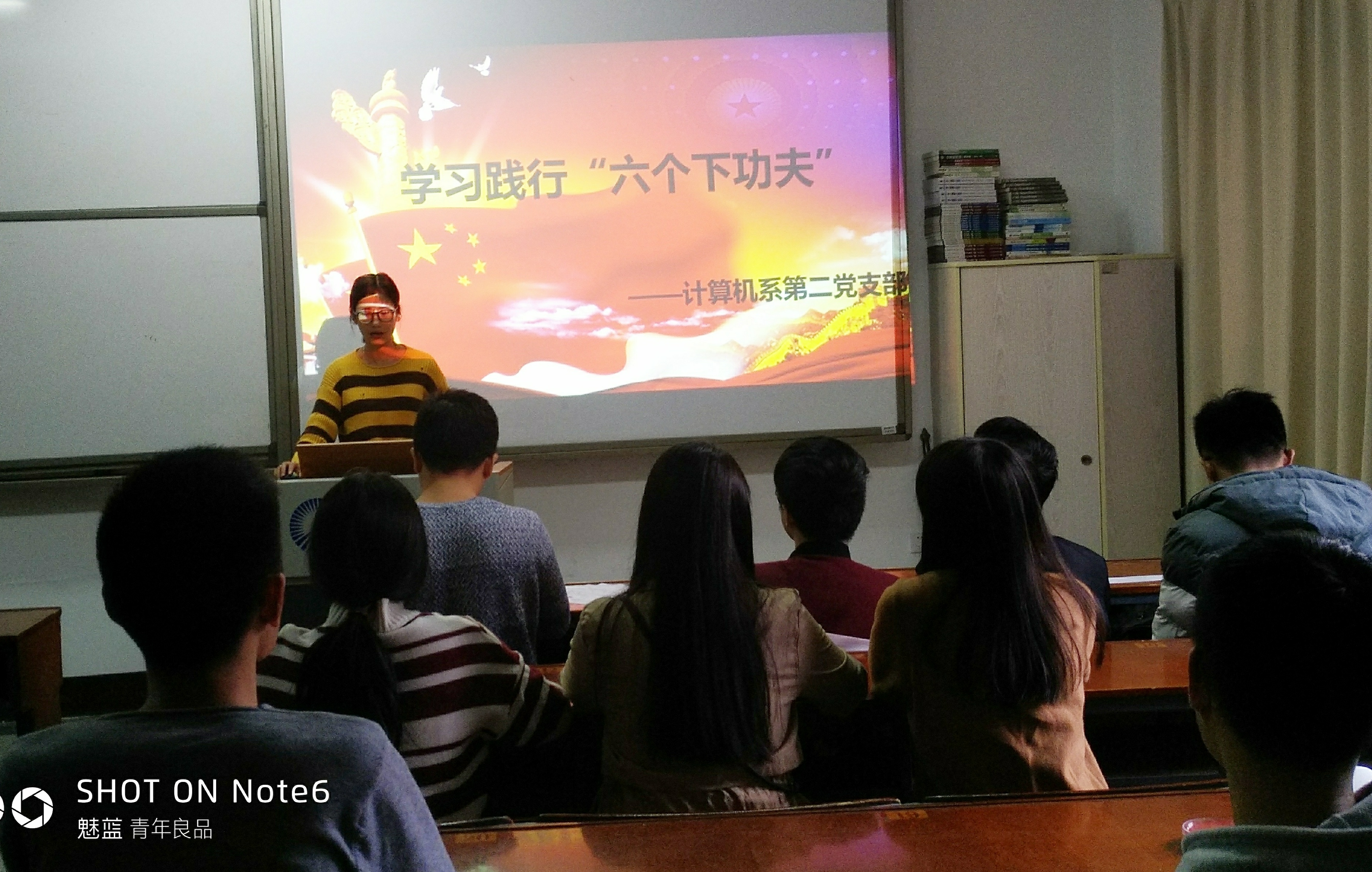 2018年12月5日,计算机系第二党支部在共和楼302召开了学习践行“六个下功夫”会议。此次会议由党支部书记吴慧航同志主持。