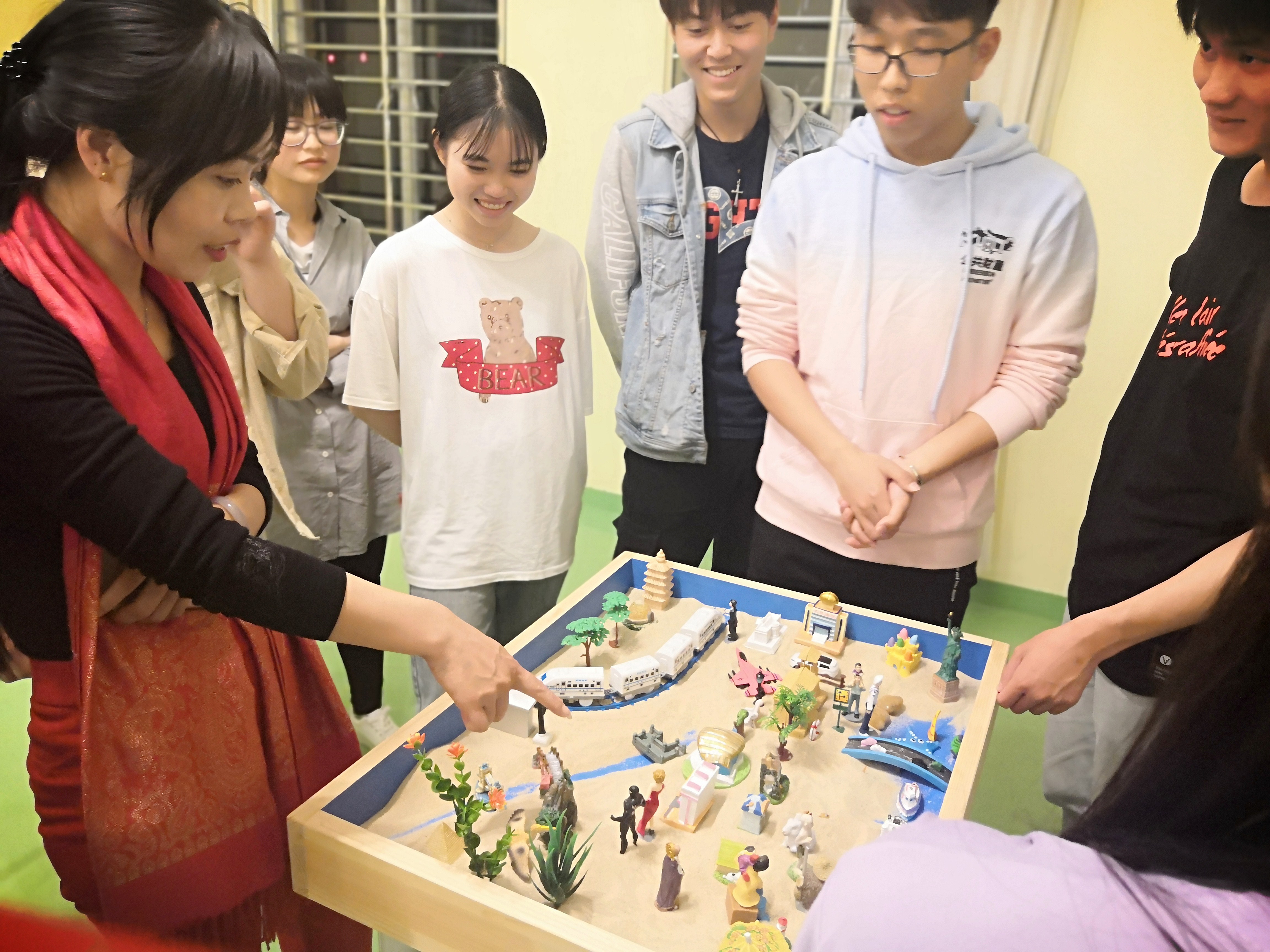 中心主任王艳红老师带领同学们体验了扔毛线球、识图排数字、心有千千结等小游戏,在做中学,让同学们更加深刻体验到人际关系是如何错综复杂,而我们又该如何团结协作。为了让同学们更加的了解心理健康中心的具体功能,老师带领大家一一参观了生物反馈治疗室、情绪发泄室、沙盘游戏室等地方,并带领大家体验各种心理疗法以及仪器。