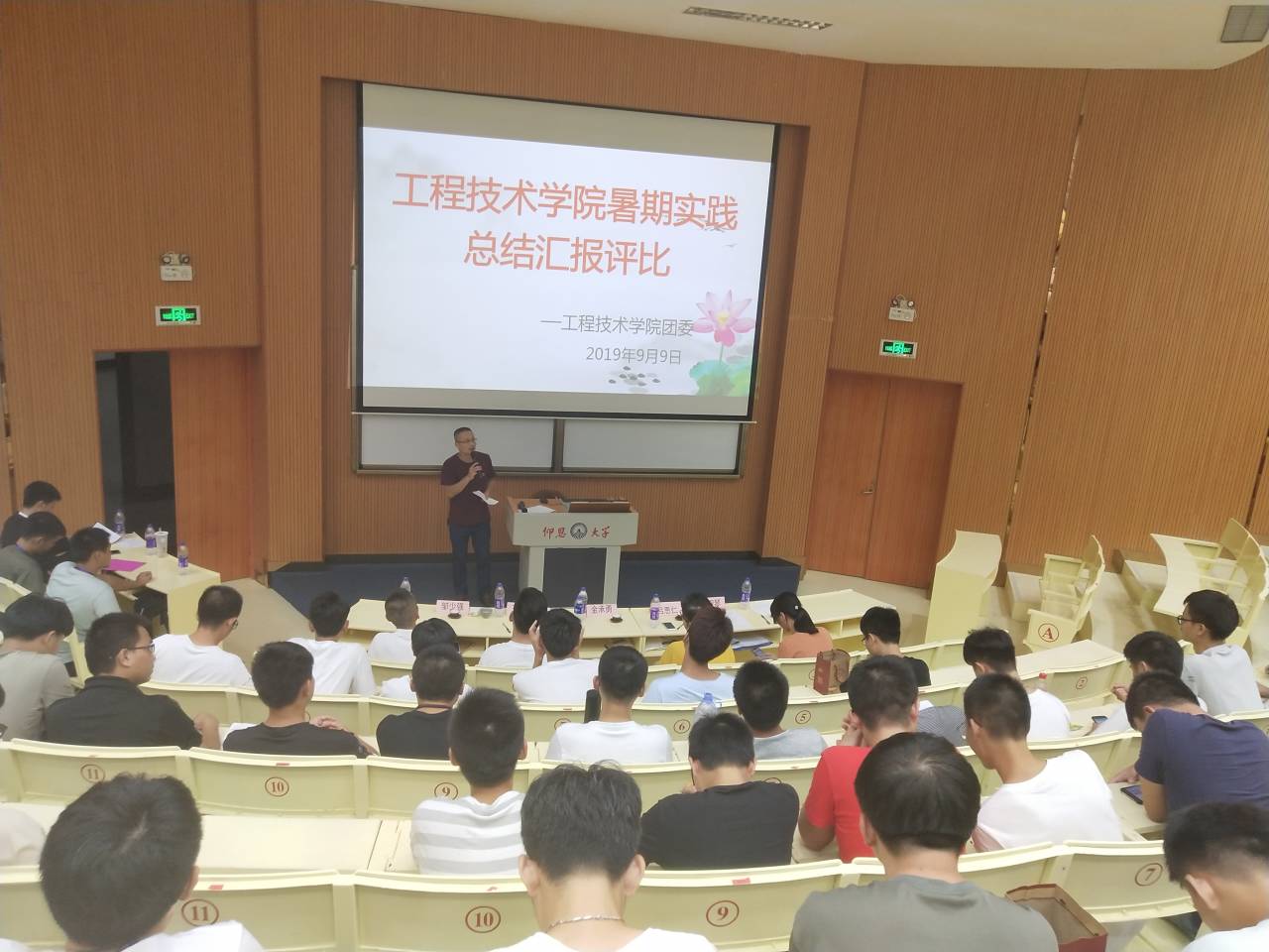 9月9号晚,beat365在线唯一官网登录团委在第一教学区和昌致知讲堂举行beat365在线唯一官网登录2019年暑期实践总结汇报评比,学院常务副院长金承勇老师,学院党总支副书记吕思仁老师,学院团委书记许淑琴老师,新闻工作中心指导老师王茂伟老师,辅导员邱少强老师及2018级全体beat365在线唯一官网登录学生出席本次大会。