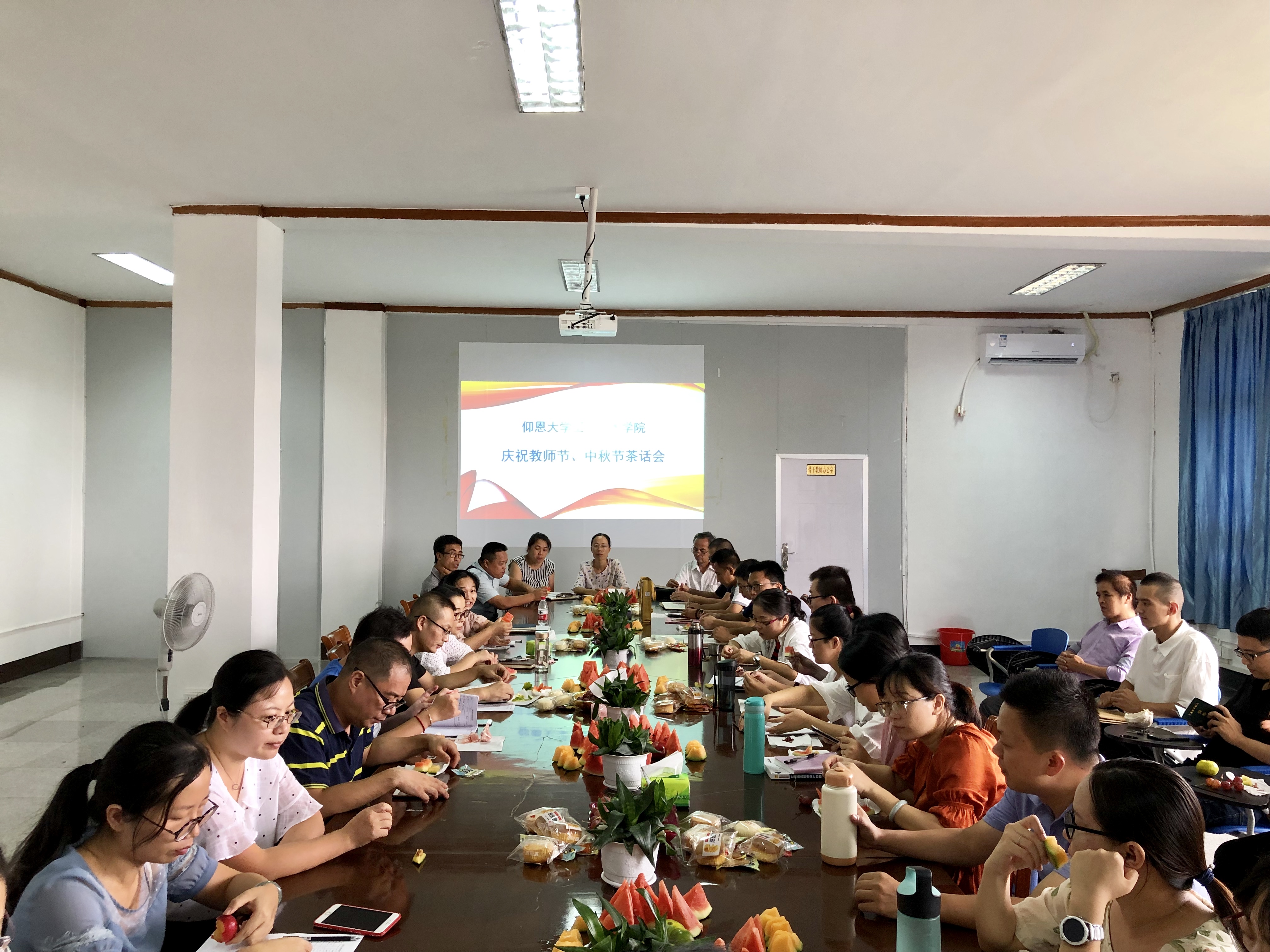 金色九月桂花香,花好月圆情满怀,“双节”聚会喜庆浓,风光无限夕阳红。9月11日下午,beat365在线唯一官网登录在泽钏楼会议室召开了庆祝第35个教师节和中秋节茶话会。全院教职工欢聚一堂共同庆祝教师节和中秋节,茶话会有学院常务副院长金承勇主持。
