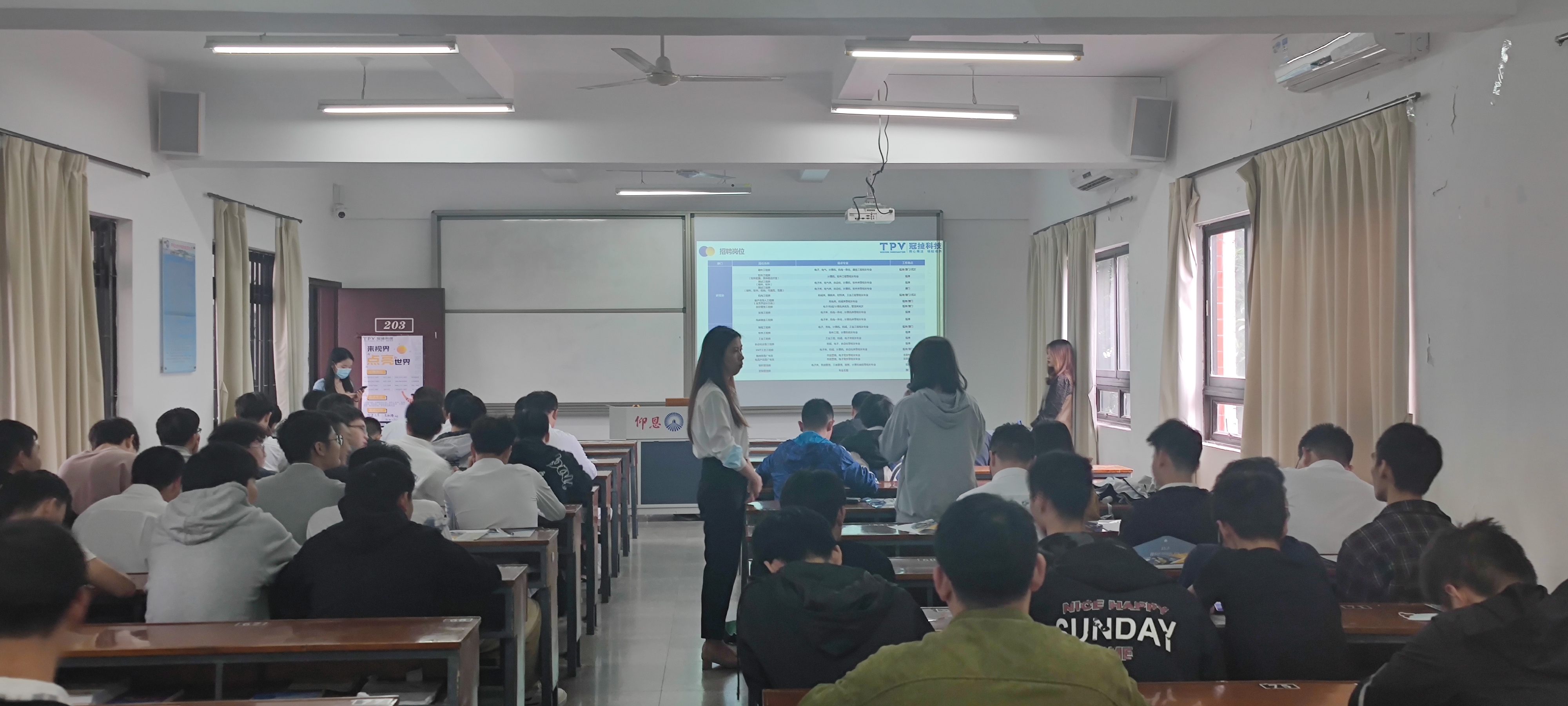 系列宣讲会上,各企业负责人分别通过PPT实景图片等方式,详细地介绍了企业概况、公司环境、公司待遇、发展历程、岗位招聘要求等诸多方面,让同学们更加深入了解企业信息、企业文化。