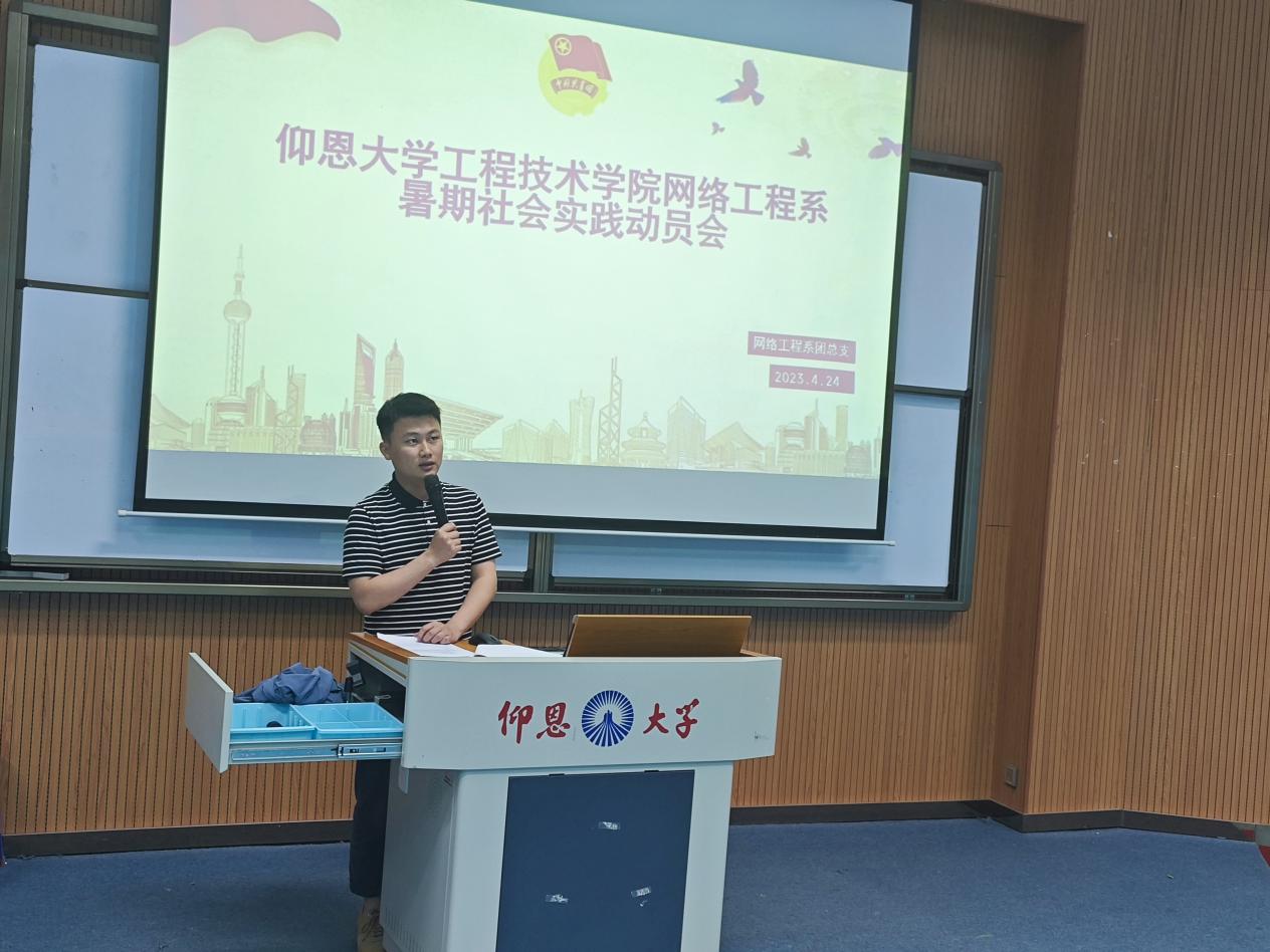 beat365在线唯一官网登录网络工程系团总支于2023年4月24日晚上18:00在新区和昌楼博雅讲堂召开了暑期实践动员大会。此次大会由网络工程系团总支书记林嘉豪主持。