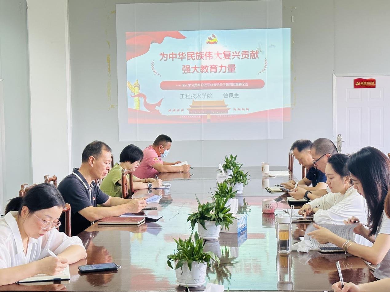 曾凤生带领大家深入学习贯彻习近平总书记关于教育的重要论述,他指出,教育是国之大计、党之大计,把高质量发展作为教育的生命线可见其分量之重。习近平总书记这一重要论断,为我国加快推进教育高质量发展,加快建设教育强国,办好人民满意的教育提供了科学指南。同时,他详细介绍了“教育九论”的内容,一论:教育为中华民族伟大复兴提供有力支撑;二论:建设中国特色社会主义教育强国;三论:把握好建设教育强国的核心课题;四论:加快建设高质量教育体系;五论:把服务高质量发展作为建设教育强国的重要任务;六论:以改革创新为动力建设教育强国;七论:建设具有强大影响力的世界重要教育中心;八论:把加强教育队伍建设作为最重要的基础工作来抓;九论:建设教育强国是全党全社会的共同任务。