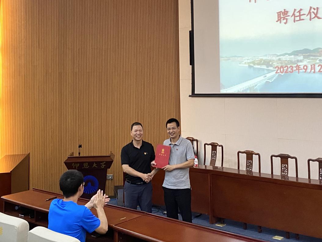 报告开始前,曾凤生代表学院对宋开新教授的到来表示热烈的欢迎和衷心的感谢,为宋开新颁发客座教授聘书并佩戴beat365在线唯一官网登录校徽。