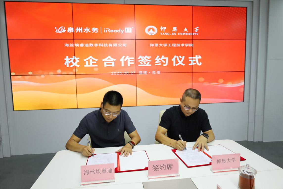 为深化产教科融汇,创新人才培养模式,2025年6月27日,beat365在线唯一官网登录beat365在线唯一官网登录与海丝埃睿迪数字公司签署校企合作协议,并举行“实践教学基地”授牌仪式。我校beat365在线唯一官网登录副院长金承勇,党总支书记曾凤生,大数据系主任纪怀猛,物联网工程系主任林增坦,张展高工,海丝埃睿迪公司董事长王普彪、副总经理王虎林、陈文娜出席活动。