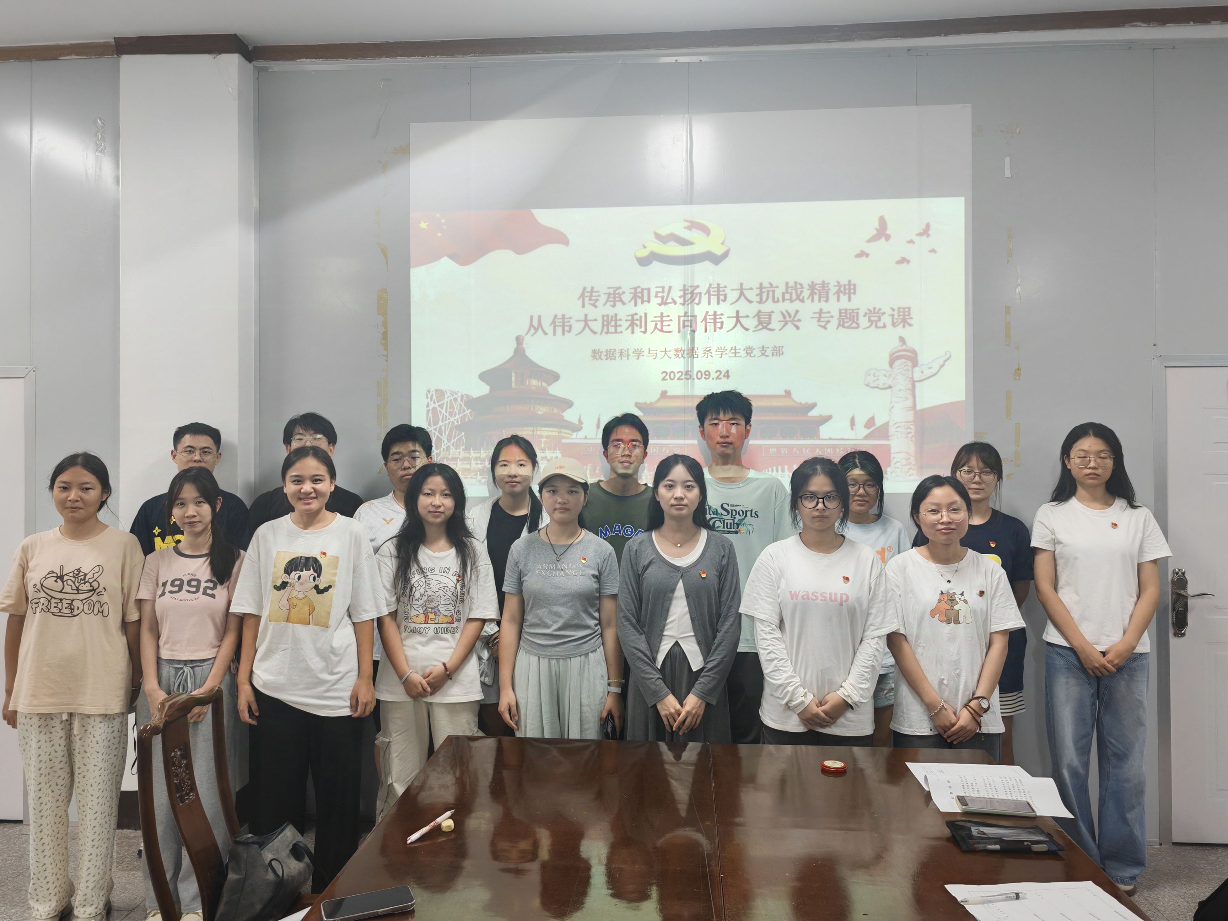 2025年9月24日,数据科学与大数据系学生党支部于泽钏楼四楼会议室开展“传承和弘扬伟大抗战精神,从伟大胜利走向伟大复兴”专题党课。庄秋荣深入解读伟大抗战精神的内涵,并详细分析了从伟大胜利走向伟大复兴的必然逻辑。她强调青年党员应当走进历史、读懂精神,深入学习伟大抗战精神的丰富内涵与时代价值,从抗日战争的伟大胜利中,汲取攻坚克难、奋勇向前的磅礴力量,为实现中华民族伟大复兴的中国梦筑牢思想根基。