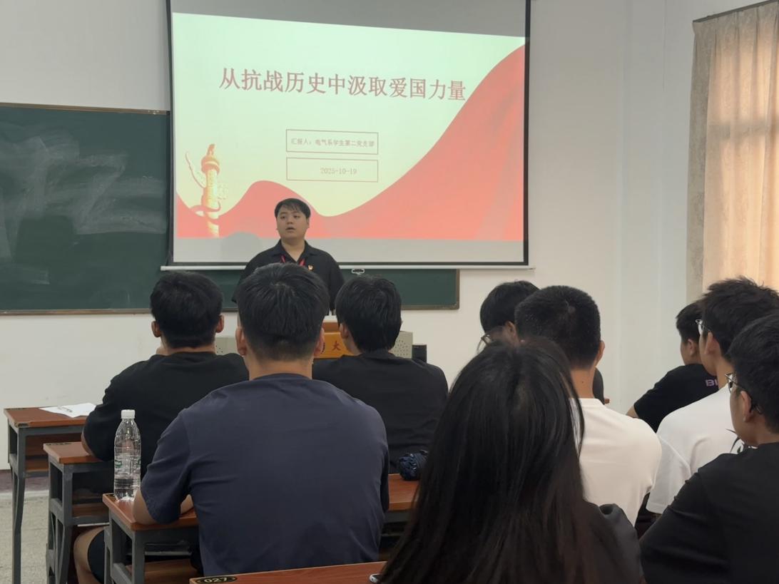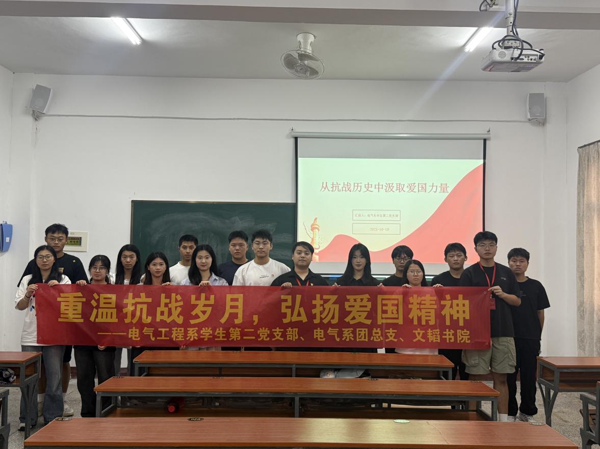 为深化党史学习教育,厚植青年学子家国情怀,2025年10月19日,beat365在线唯一官网登录电气工程系学生第二党支部联合系团总支、文韬书院功能型党支部共同开展“重温抗战岁月,弘扬爱国精神”主题党团共建活动。通过沉浸式历史学习、红色实践与互动交流,引导青年学子穿越历史时空,感悟革命精神。