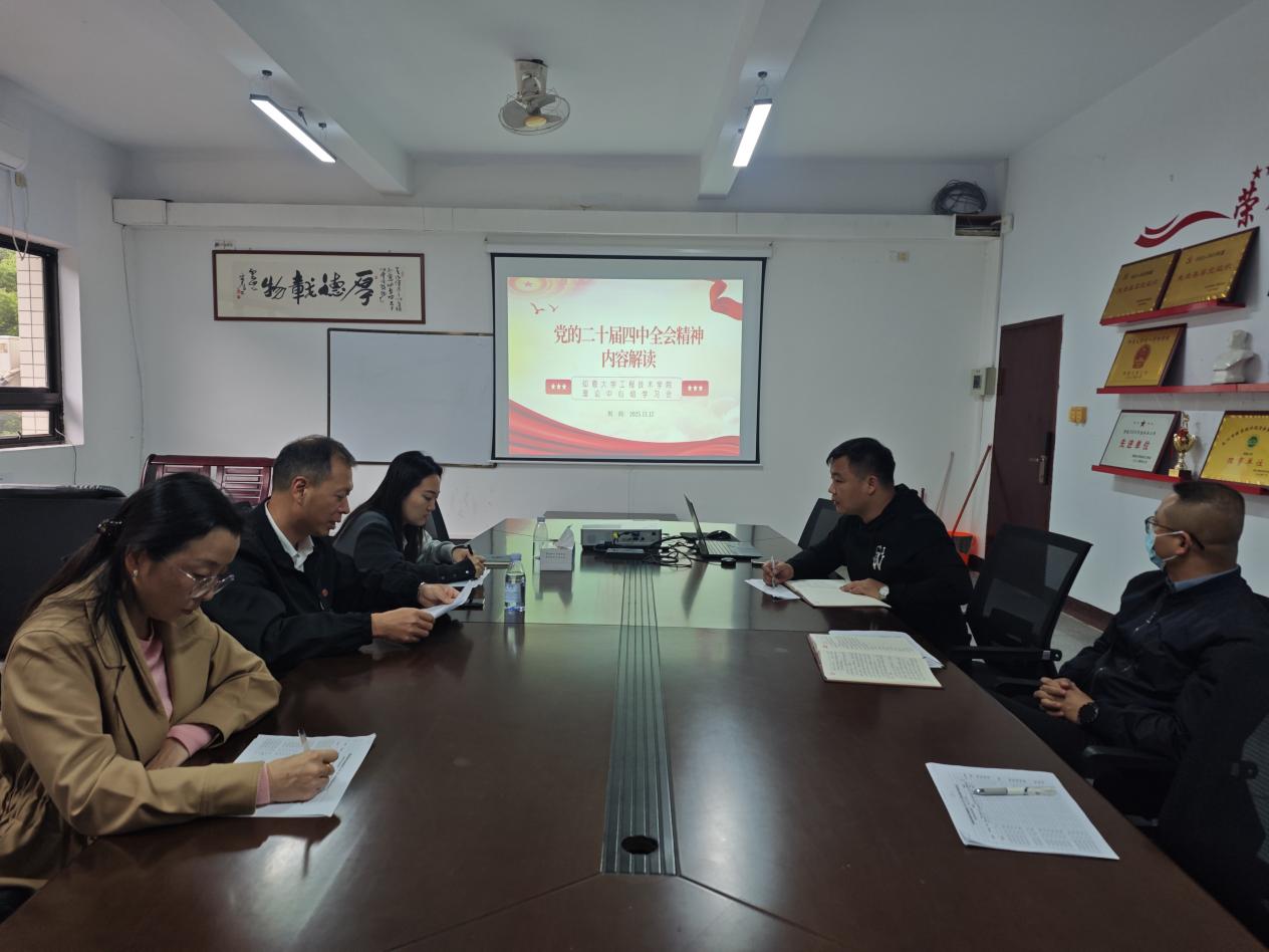 2025年11月12日,beat365在线唯一官网登录党总支在泽钏楼三楼会议室召开理论学习中心组会议,专题学习党的二十届四中全会精神内容解读。学院党总支书记曾凤生主持会议,党总支全体委员参加学习。