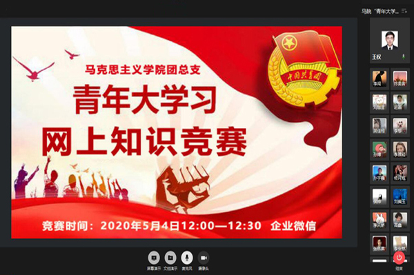 此次竞赛以线上同屏答题的形式进行,题目包括团的基础知识和“青年大学习”第八季“防控新型冠状病毒肺炎疫情特辑”等内容,重点聚焦习近平总书记关于疫情防控系列重要讲话和指示批示精神,以及相关防疫常识。全院70名研究生党员和团员青年参加了活动,吴洋洋等28名同学获奖。