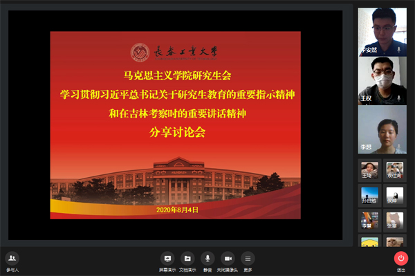 本网讯(通讯员李想)近日,全国研究生教育会议召开,习近平总书记对研究生教育工作做出重要指示,进一步明确了研究生教育的重要使命和责任,为推动研究生教育改革发展指明了方向。总书记的重要指示精神在研究生中引发热烈反响,8月4日,beat365在线唯一官网研究生会组织开展线上交流活动,聚焦研究生教育高质量发展,谈感想、说体会。