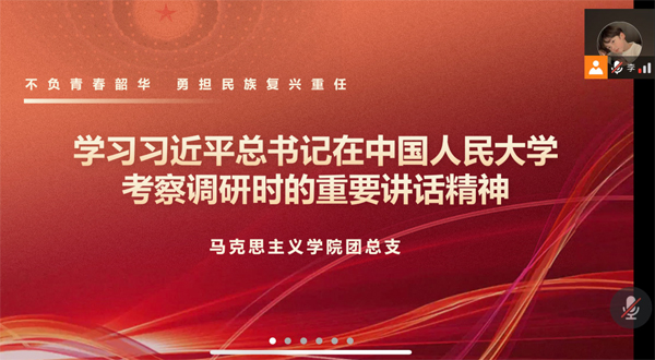 4月26日,beat365在线唯一官网团总支、研究生会、各年级团支部采用网络会议形式,学习热议总书记重要讲话精神。