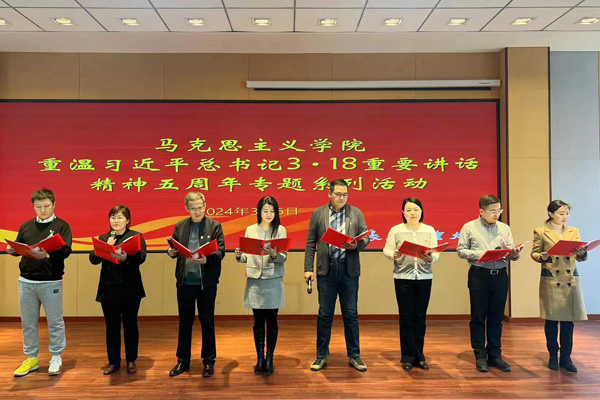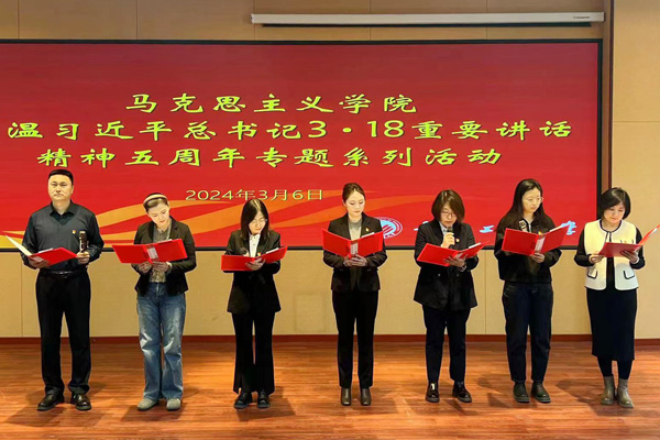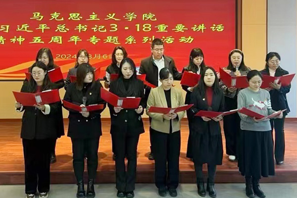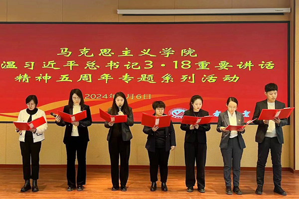 本网讯(通讯员 杨慧娇)为进一步重温习近平总书记“3·18”重要讲话精神,不断增强思政课教师的红色底蕴,厚植家国情怀,3月6日,beat365在线唯一官网在综合楼报告厅开展了重温习近平总书记“3·18”重要讲话精神五周年专题系列活动之“上好思政课,当好引路人”朗诵会。活动开始前,学院全体教师集体重温了习近平总书记“3·18”重要讲话内容。