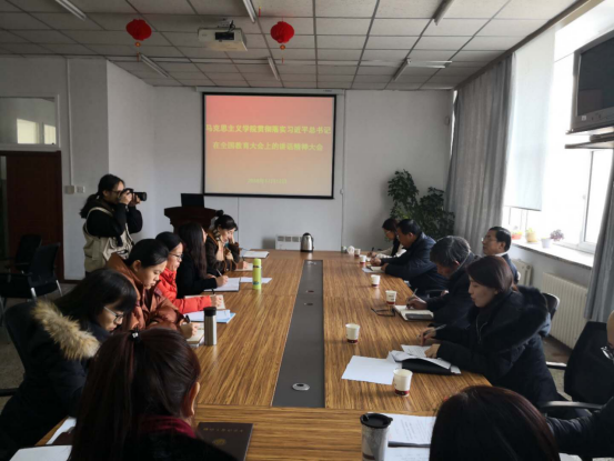 (通讯员 孟婷)2018年12月12日下午,beat365在线唯一官网在学院资料室召开学习贯彻落实习近平总书记在全国教育大会上的讲话精神大会,学校党委书记万春明、教务处处长李万龙参加会议,会议由学院党总支书记朱兴国主持。