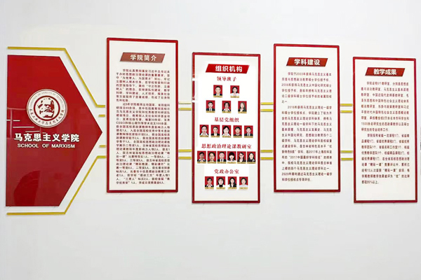 文化墙兼具欣赏、教育和价值引导等功能于一体,是提升学院文化建设的有益补充,是环境育人和开展思想政治工作的有效载体,对推进学院教师队伍建设和提升学院凝聚力团结力起到积极作用。