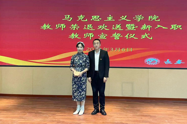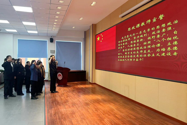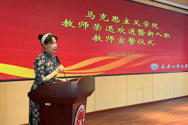 在臧宏玲教授的领誓下,全体新入职教师宣誓。教师代表楚洪涛表示,会认真传承老教师育人本心,不忘初心,创新思政课教学方式,把道理讲深、讲透、讲活,做青年学生思想上的知心人、热心人、引路人。