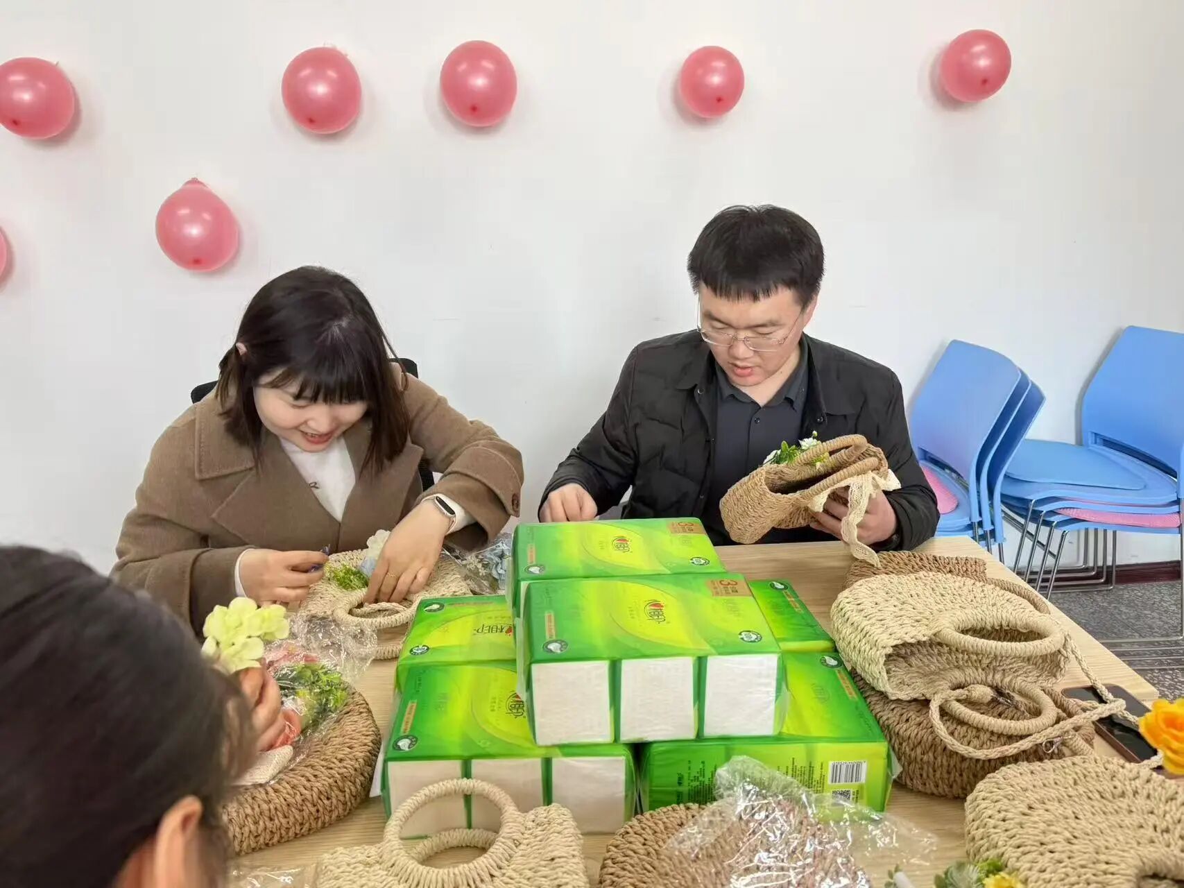 在第115个“三八”国际劳动妇女节来临之际,为丰富学院女性教职工精神文化生活,增强团队凝聚力,3月5日下午beat365在线唯一官网在学院会议室开展“包揽春日,魅力巾帼”手工草编包DIY活动,全院女性教职工齐聚一堂,共度温馨且意义非凡的节日。