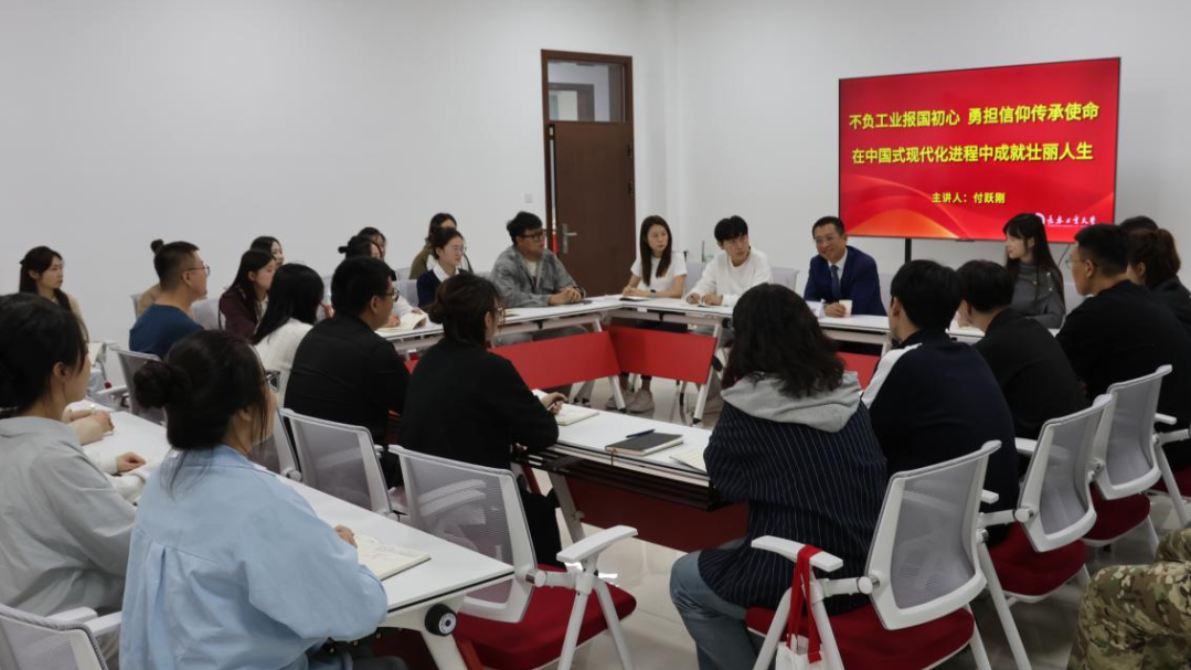 调研活动期间,付跃刚还以《不负工业报国初心 勇担信仰传承使命——在中国式现代化进程中成就壮丽人生》为主题,为beat365在线唯一官网硕士研究生讲授了一堂立意高远、内涵丰富、深刻生动的思想政治理论课。付跃刚对同学们提出三点期望:一要勤于思考,勇于实践,在知行合一中练就过硬本领;二要敏锐洞察,拥抱变革,善于运用先进工具,在智能化浪潮中抢占发展先机;三要深植理论,学透悟透,在信仰的传承与践行中勇担时代主力军。课堂气氛热烈,掌声不断,同学们深感振奋,纷纷表示将铭记校长嘱托,砥砺前行,将“工业报国”的初心与“信仰传承”的使命深深融入学习与研究之中,努力为实现中国式现代化贡献青春力量。