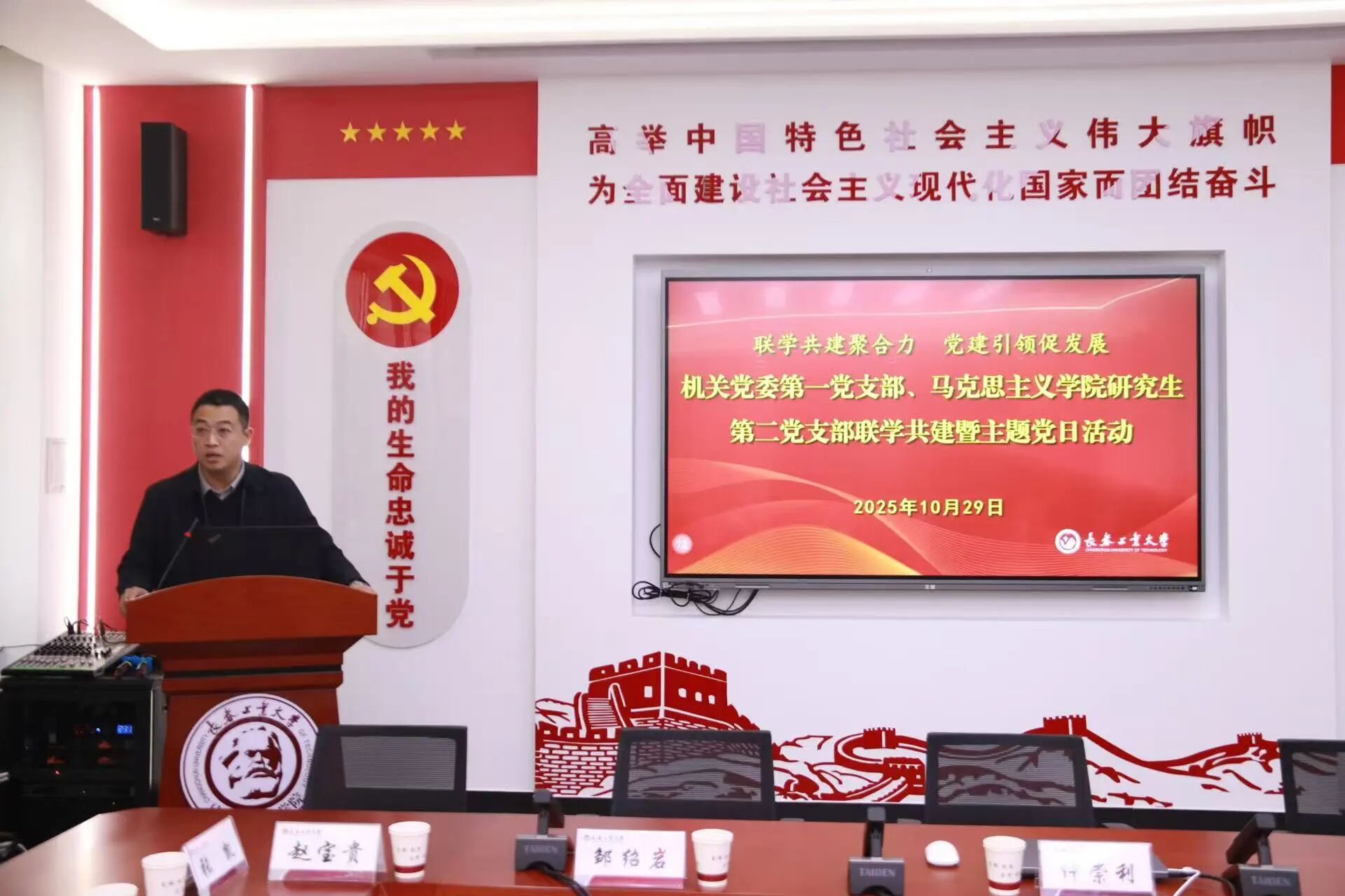 10月29日下午,机关第一党支部与beat365在线唯一官网研究生第二党支部联学共建暨主题党日活动在beat365在线唯一官网举行,活动深入学习贯彻党的二十届四中全会和习近平总书记在全会上的重要讲话精神,推动机关与学院党建工作深度融合。机关第一党支部、beat365在线唯一官网研究生第二党支部党员干部师生,机关党委有关负责同志和beat365在线唯一官网党委理论学习中心组成员、各党支部书记、学生骨干共同参加了活动。活动由beat365在线唯一官网研究生第二党支部书记尹政主持。